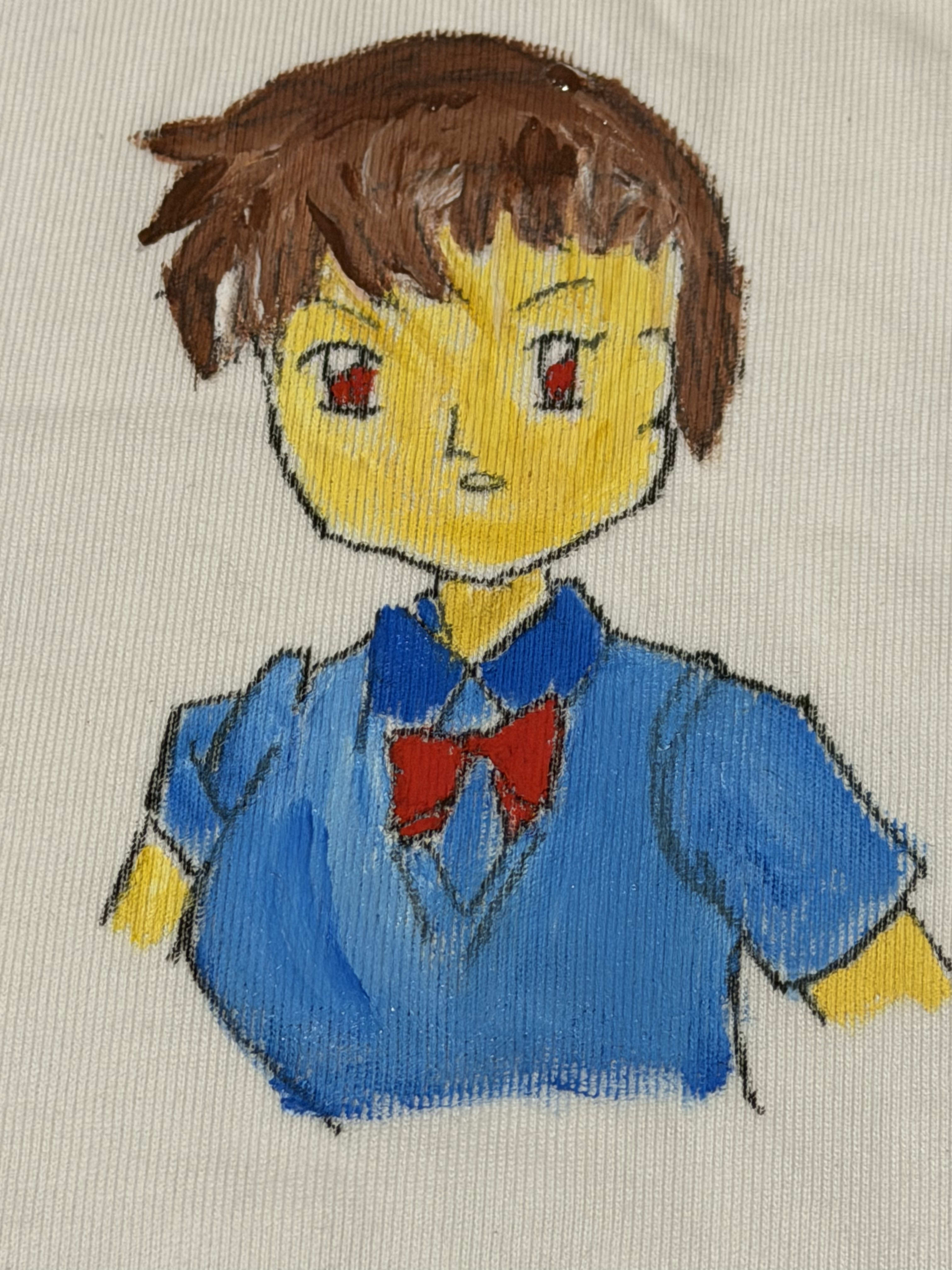 So when life gives you a pretty half-painted T-shirt, what do you do? You either work on a relationship eulogy or you just find other cool people and start painting on it with them. So I kept painting this T-shirt and made it full of many easter eggs and people I know. I would just hang with people and ask them to paint it with me.